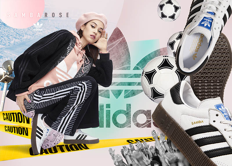 水原希子选择 Sambarose,以室内足球鞋为蓝本,加厚的中底设计凸显女生的高挑造型。
