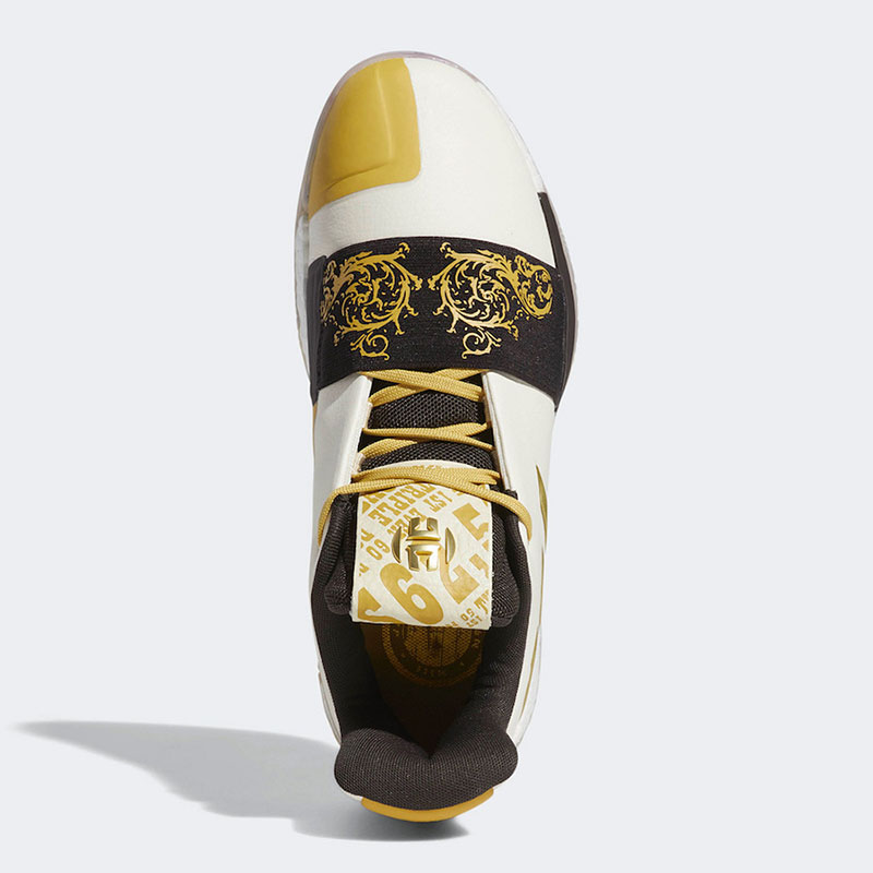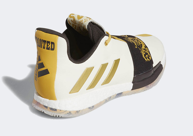 眼前这双全新配色 Harden Vol.3 “Wanted” 也非常应景,以美国西部剧情中经常出现的 “通缉令” 为灵感,采用黑、黄撞色点缀金色花纹,整体气氛颇为华丽!