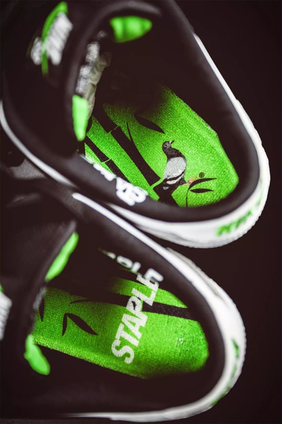 鞋垫则彰显了中国元素,鸽子和竹子的融合,也是 Jeff Staple 作为华裔设计师的情怀所在。