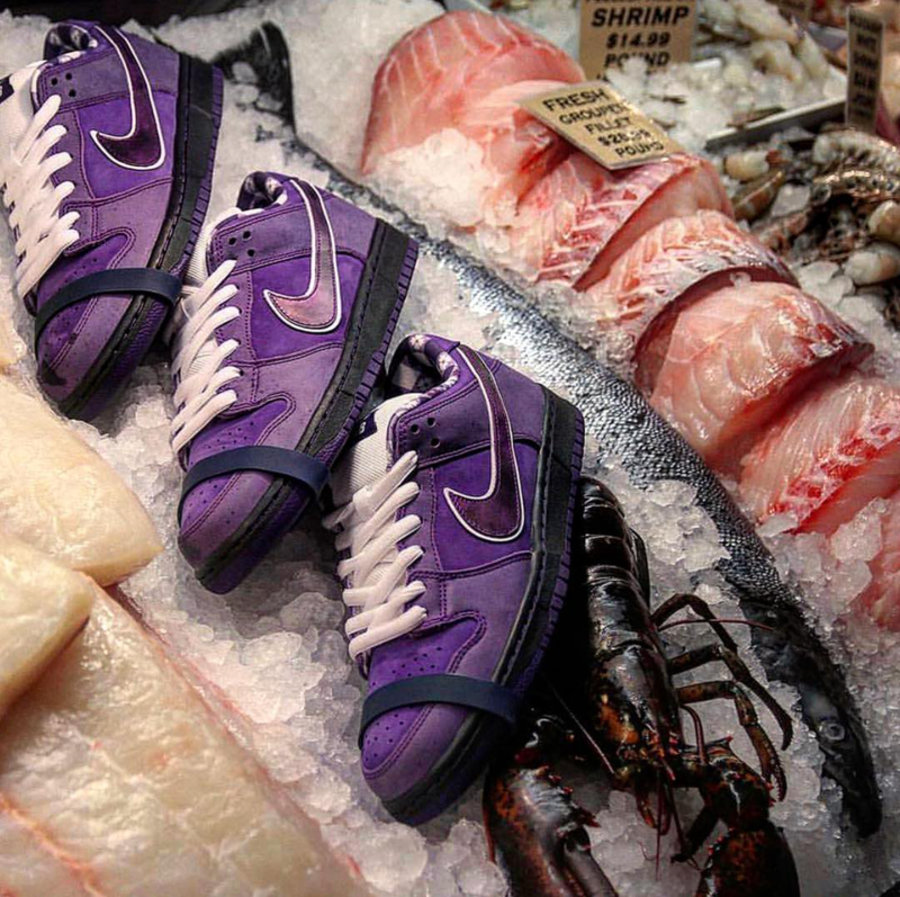 知名球鞋店铺 Concepts 落户上海,以往从未在国内发售的联名球鞋也迎来大规模市售。今年 Concepts 延续标志性的龙虾主题 SB Dunk Low,推出紫龙虾配色。