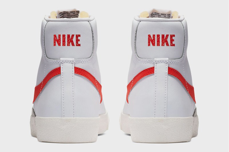 鞋款以复古的白红色为主调,白色的牛巴革鞋面搭配翻毛皮细节点缀,大红色 Swoosh Logo 格外醒目,由 Blazer 鞋型承载之下散发出强烈的复古气息。