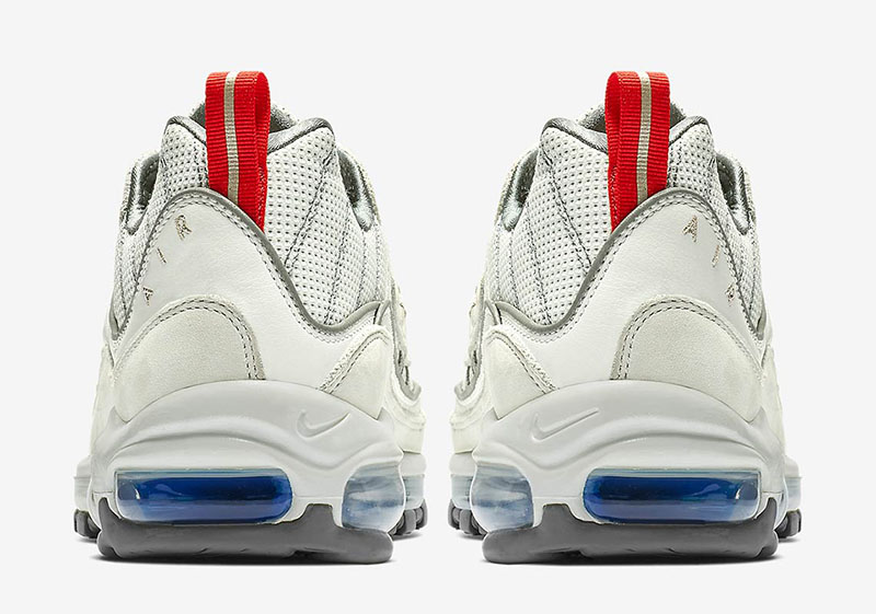 鞋身采用白色为主调,Swoosh 与后跟鞋提注入鲜红装饰,宝蓝色中底气垫再添丰富层次!特别之处在于鞋身内侧,经由金属光泽的银色刺绣打造 “98” 字样,区别于此前常规造型,彰显鞋型身份的同时,更凸显独特个性,非常有仪式感!