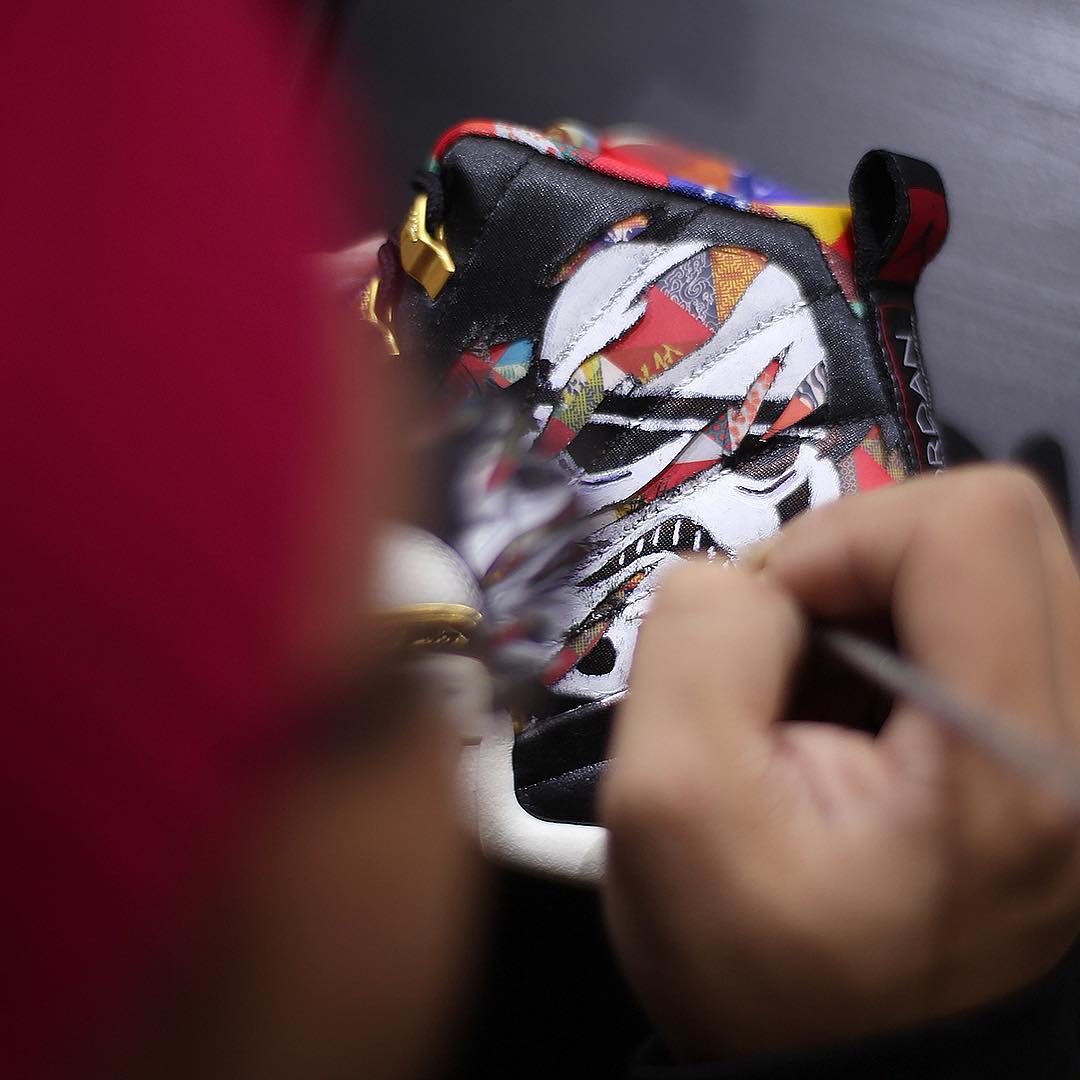 近日国内球鞋摄影师 @gc911 也带来了一双创意设计作品,可以看到左右脚外侧先分别画上了新老白兵,再用不同花纹裁开黑色鞋面,相互搭配有一种格外酷炫的美感。