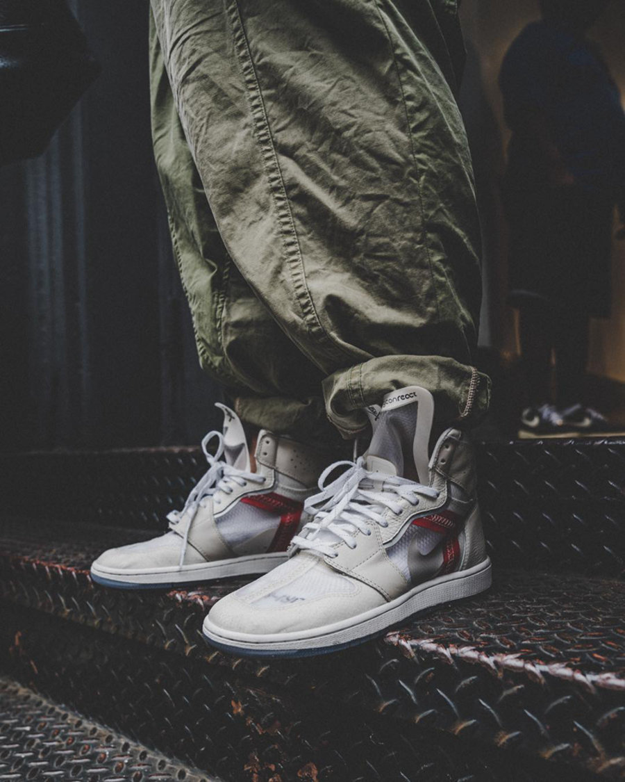 鞋型继承 9 孔 Air Jordan 1 的经典造型,但纯白搭配红色点缀的配色方案以及半透明蝉翼材质都来自 Element 87 首发配色。不仅拥有帅气挺拔的鞋型,同时还有蝉翼材质带来的清爽质感与解构风格。