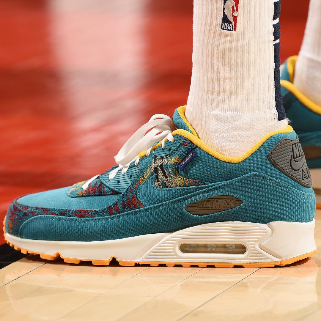 鞋王 P.J.Tucker 依旧是本周最具看点的球星,不仅助力冠希上脚 CLOT x Air Jordan 13 Low,经典的 KD4 “气象员” 也被他拿来上脚实战。