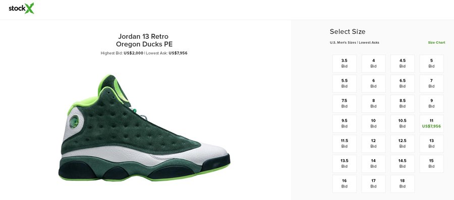 至于两双鞋的价格,小编在 StockX 上查了一下,Air Jordan 13 “Oregon” 只有 US11 码,价格高达近 $8000 美元,而另一双 KD 3 EA sports sample 便宜不少,价格不到 $700 美元,但数量同样极为稀有。