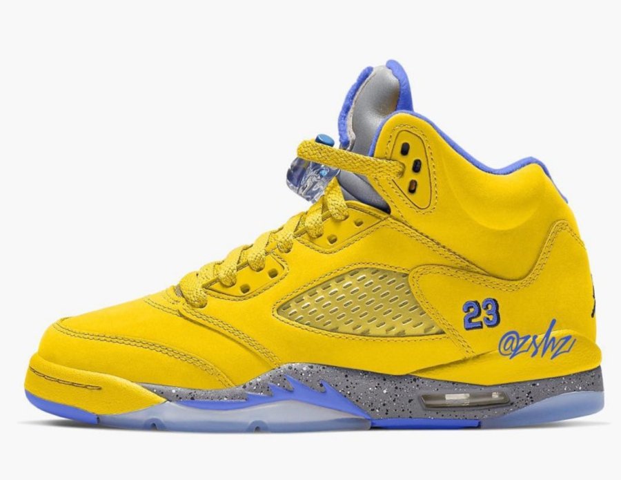 乔丹母校兰尼高中配色一直是 Jordan 鞋款备受青睐的主题之一,今年年初的发售重点之一就是本月的 Air Jordan 5 “Laney”。