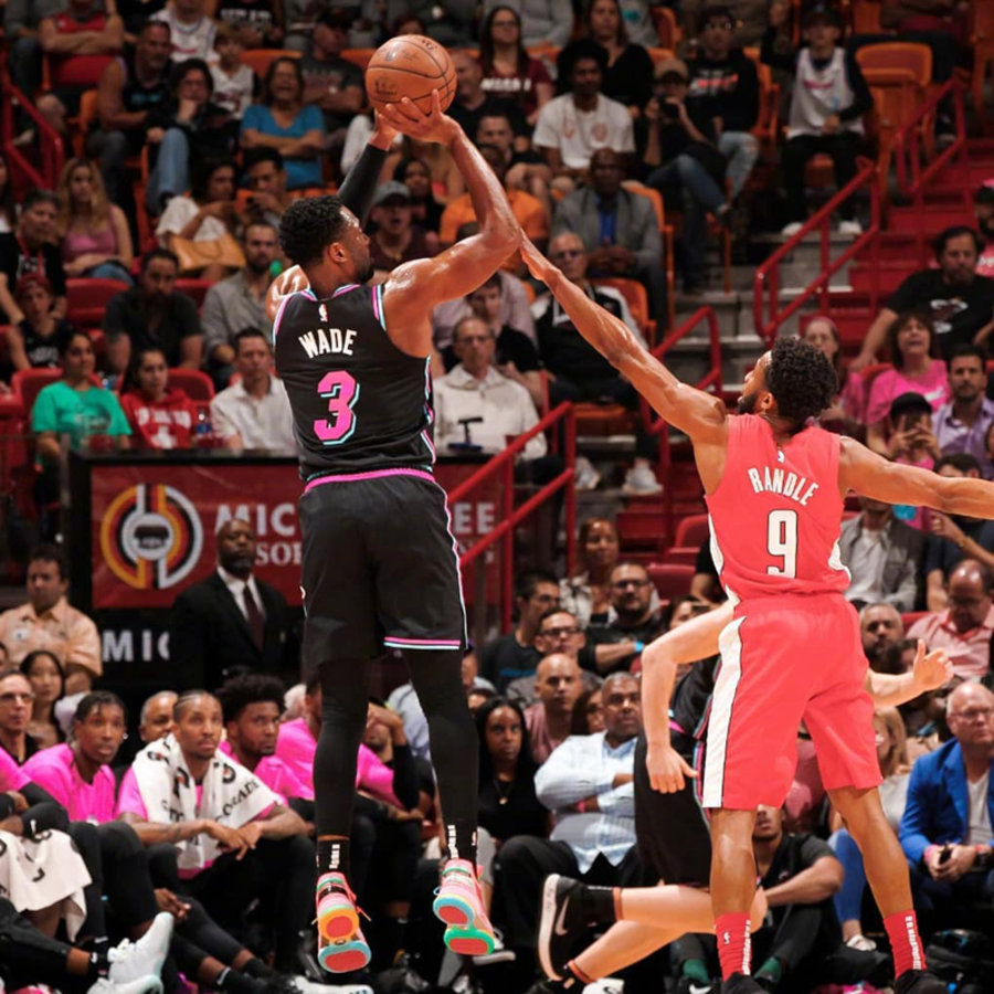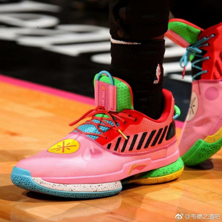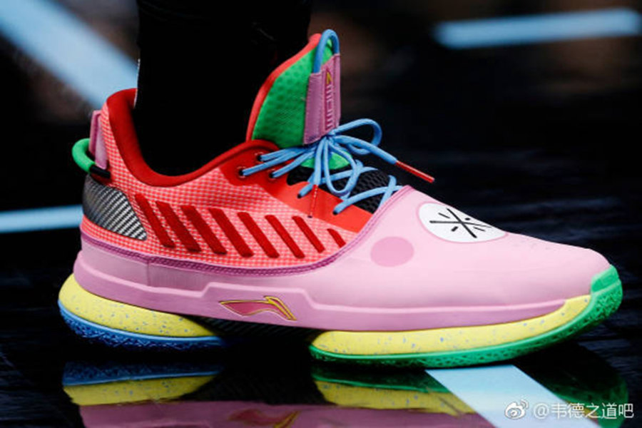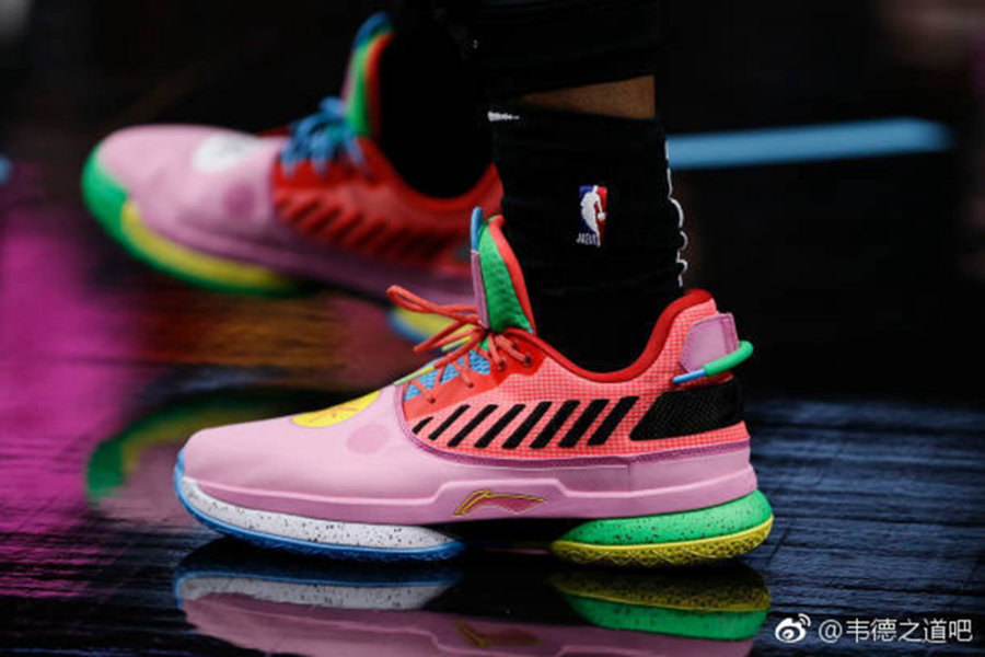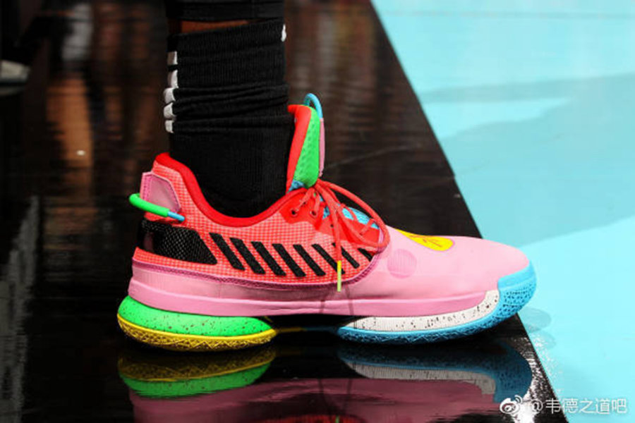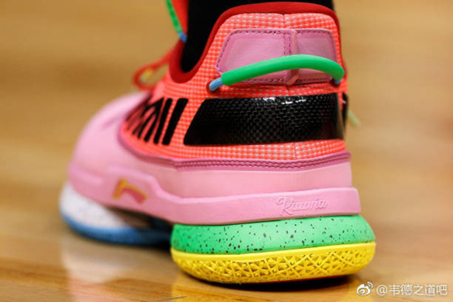 对于韦德上脚这样一双可爱配色,可能有些朋友感觉很奇怪。但熟悉韦德的人都知道,他的穿着风格一向以风骚著称,并且他的小女儿刚刚出生,作为奶爸穿上小朋友们最喜欢的卡通元素球鞋也彰显了他温情一面。