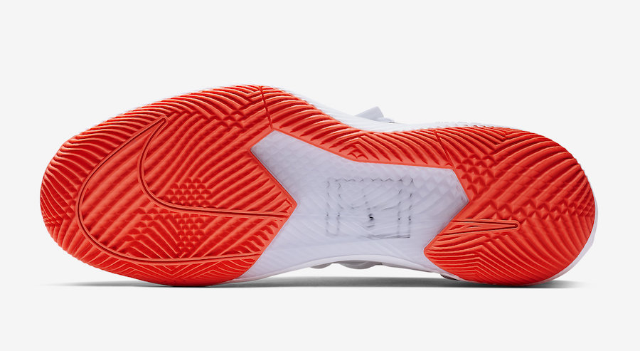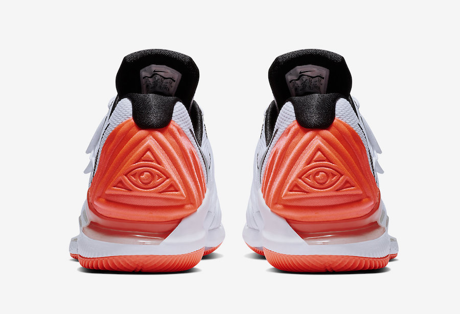 尽管外形依旧保持 Vapor X 的原貌,但可以清晰的看出整双鞋加入了不少 Kyrie 5 的设计元素,包括鞋面上捕蝇草式的包裹设计与后跟的全知之眼都与 Kyrie 5 相同,同时在外底的半透明水晶部分露出了欧文的专属 Logo。
