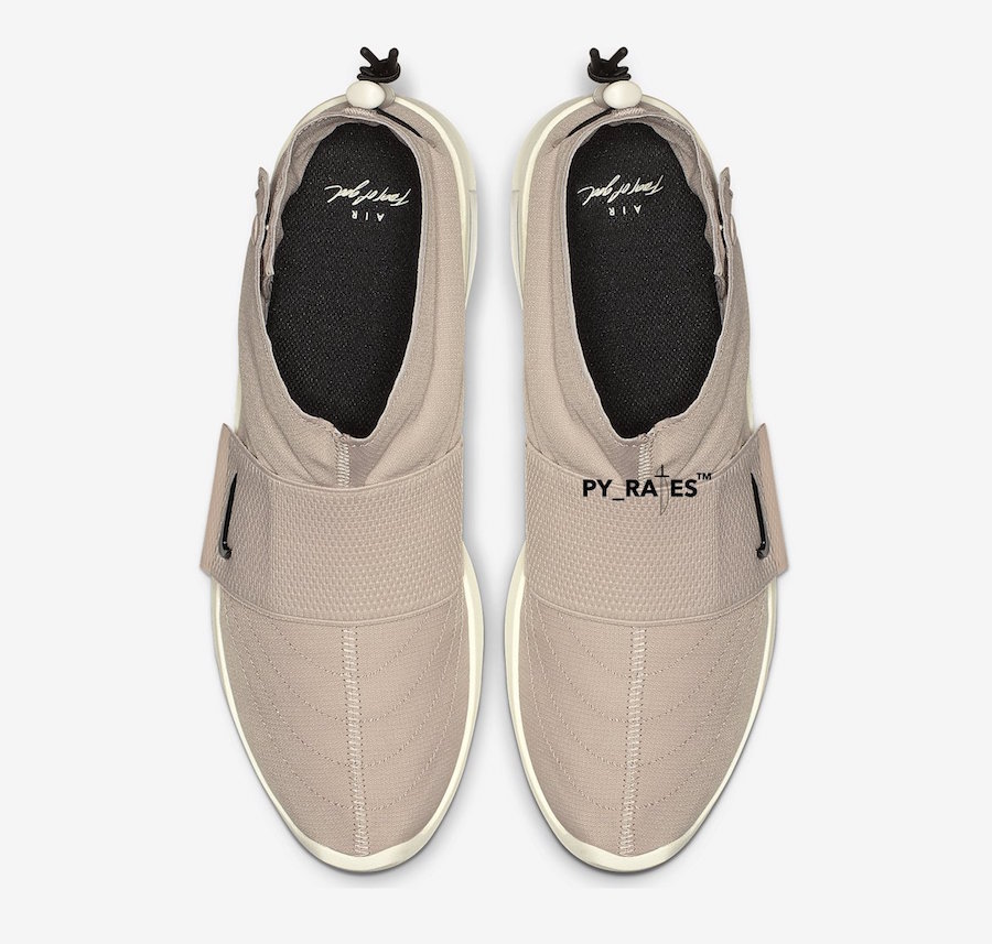 设计灵感来源于北美印第安人穿的无后跟软皮平底鞋,米色抗撕裂尼龙鞋面辅以环状车线点缀,搭载黑色 Swoosh 妆点的横向魔术贴,后跟注入锁扣取代高帮版本的拉链,配合脚踝按扣设计,彰显独特个性之余,让穿脱也更为轻松方便。