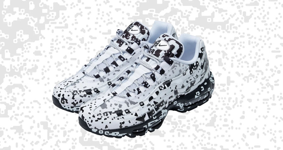 不规则的数码迷彩覆盖于 Air Max 95 鞋身之上,营造出复古又迷幻的独特气质。开窗的 Air Max 气垫上,同样有迷彩纹理涂装,细节颇为讲究!