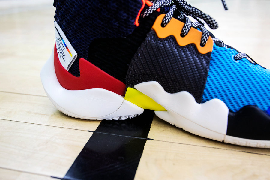 后跟部位翘起,外底延伸而出,有点像 Zoom Vaporfly Elite,这两处完全是按照威少的打球习惯而设计的。