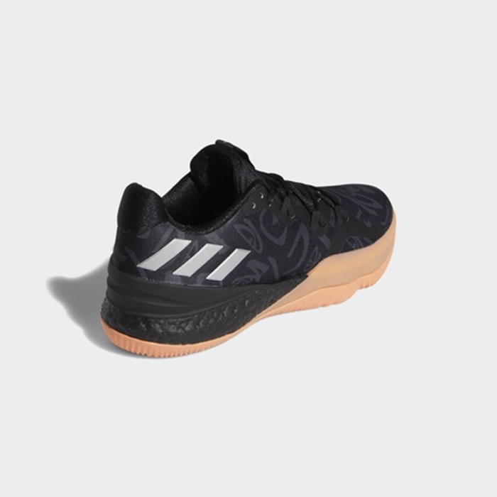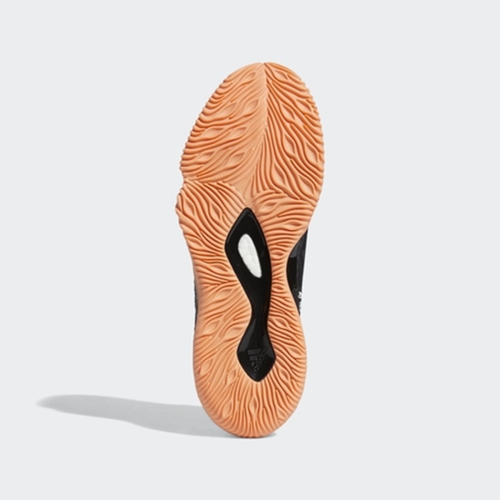 整体色调以黑色为主,搭配银色三线 Logo 点缀细节,中底可视 Boost 采用熏黑处理,保证整体性,而生胶色大底的选用,提升了整体色彩的层次感。