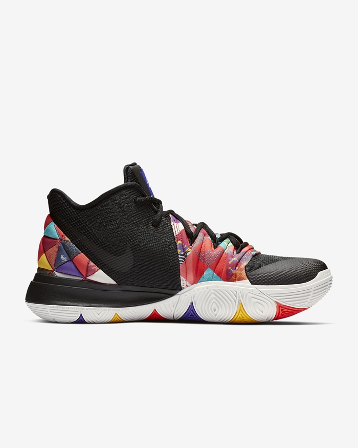 本次 Kyrie 5 鞋身最具辨识度的捕蝇草设计,注入 “百家衣” 风格的几何拼接图案呈现,与后跟细节相呼应,营造出浓浓的中国民俗喜庆气氛。鞋底同样别有洞天,彩虹装扮的多彩营造,内置 Zoom Turbo 全新设计的气垫加持,不仅散发独具一格的战斗韵味,更带来出色的实战性能!