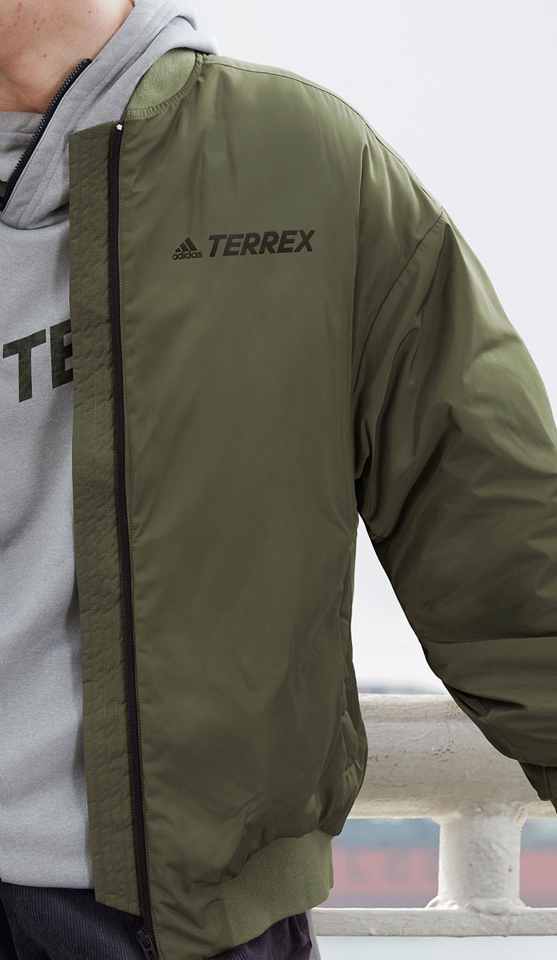 adidasTERREX Insulation Bomer 外套具有抵御风雪的防水及保暖性能,轻薄干练的剪裁设计,更为都市穿着营造出不俗的时尚感受!