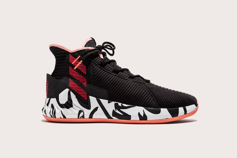鞋面为经典的黑红装扮,让人想起罗斯在芝加哥的时代,鞋领及外底点缀珊瑚粉,令配色更具层次感。