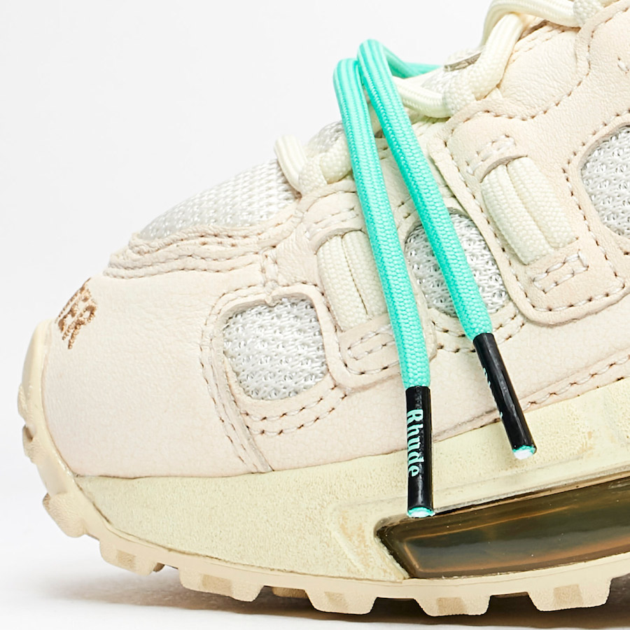 Rhude 以优雅的风格和优质用料著称,此次的联名也延续它的特点。鞋身整体以浅卡其色装扮,尽显优雅气质,鞋面使用高质感的皮革打造,彰显高规格。