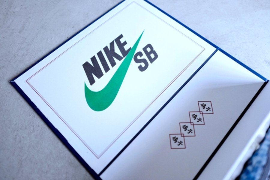 灵感来自于中国传统的 “书盒” 概念,古色古香的通体蓝色辅以 Nike SB、Staple 鸽子和熊猫竹子三大元素点缀细节。鞋盒内更是别有洞天,精美的 Dunk SB 涂鸦、硕大的品牌 Logo 以及交相呼应的鸽子、熊猫印字,均呈现出独具匠心的配色寓意,“样本1未通过” 字样则昭示了本次 “熊猫鸽子” 配色与众不同的特别身份。