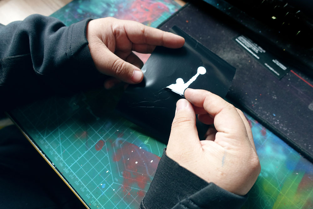 然后就需要使用刻刀开始裁了,下刀一定要稳准狠,否则切口很容易出现非常丑的毛边。