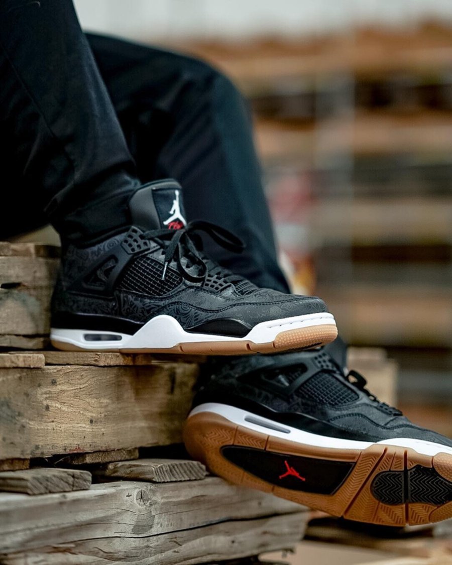 图案与早年推出的白银 Air Jordan 4 镭射极为相似,黑色鞋身搭配白色中底及生胶外底,硬朗干练的外观之下,遍布鞋面的镭射花纹,将乔丹诸多元素以图腾风格呈现,流露出精致不凡的丰富细节。