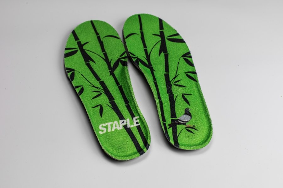 相比最初样品加入了更多绿色点缀,代替惯用的橙红色。鞋垫更是印有竹子图案,不用解释就能让大家联想到熊猫主题。