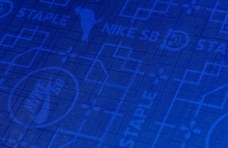 鞋盒表面带有方格暗纹和不同深浅的蓝色图案,仔细观察便可看出,带有鸽子、熊猫、Nike 及 Staple 的元素,还没打开鞋盒已经把这双鞋的身份交代的一清二楚。