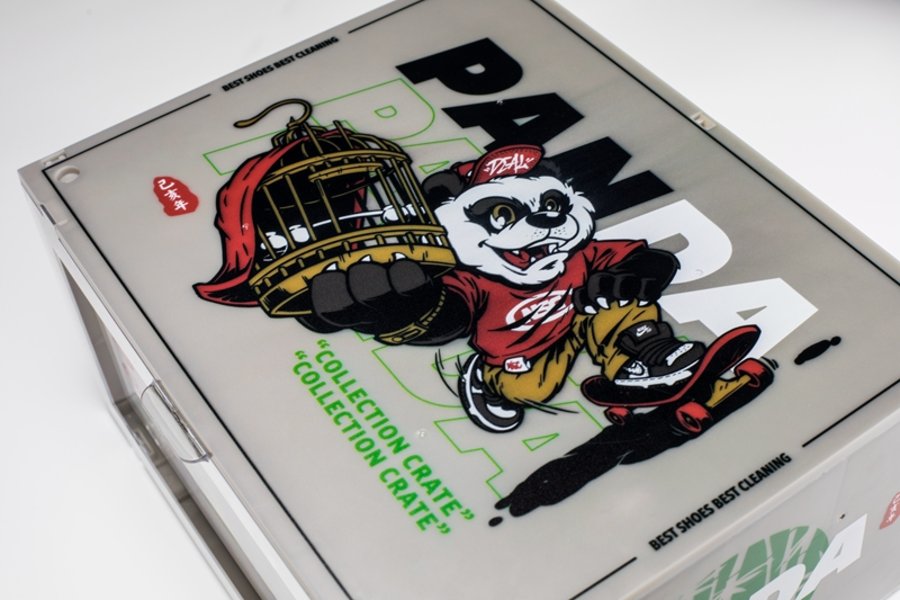 除了这款官方限定鞋盒,球鞋护理品牌 DBRukia 还联合设计单位 NSC 和知名球鞋店铺 DEAL,打造了一款熊猫鸽子主题的球鞋收纳箱。
