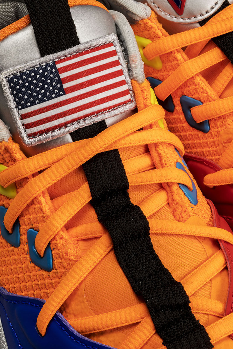 鞋舌分别采用美国国旗刺绣与 PG 个人 Logo 示人,后跟则是 NASA 刺绣与阿波罗登月计划的徽章!