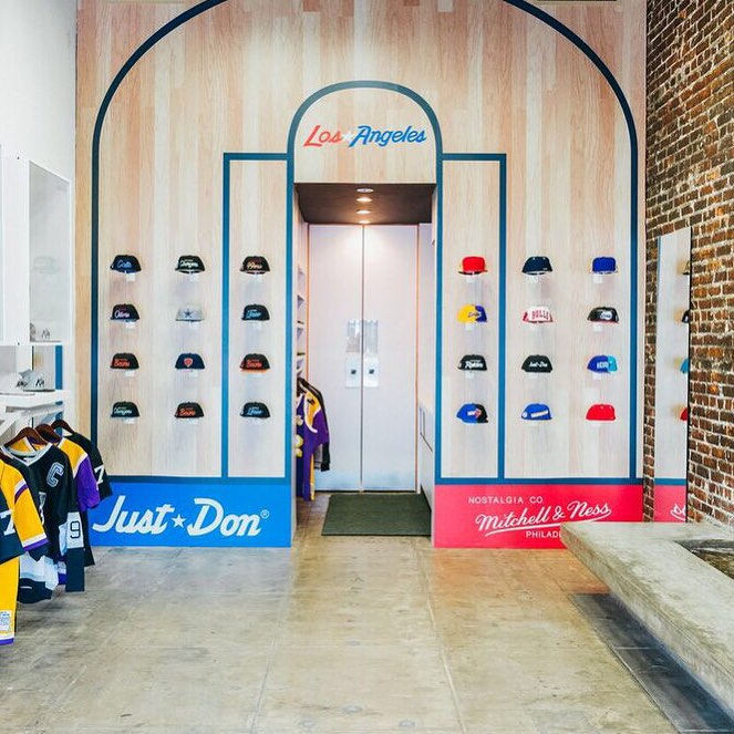 勒布朗 • 詹姆斯首次公开亮相湖人主场,全身的搭配亮点居然是条 Just Don 的复古球裤;说唱巨星 Jay-z 无论在场边看比赛,或是个人演唱会,都屡次搭配 Just Don 篮网队的帽子。