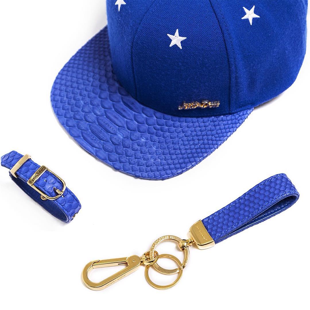 Don C 将仿动物皮纹运用到了极致,其中又将仿蟒皮材质发挥到巅峰。撞色蛇纹之上层叠鳞片,点缀金质配饰,奢华但不浮夸。一个原本材质普通的帽檐,居然可以被装点如此高级!