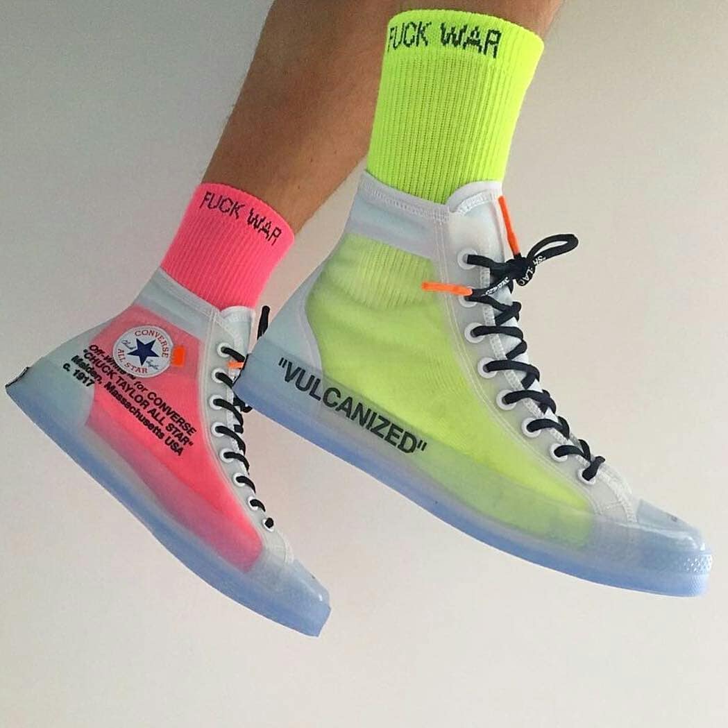 去年五月发售的 “The Ten” 系列压轴之作 OFF-WHITE x Converse,超高人气的半透明鞋面,引来各路球鞋设计师的纷纷效仿,甚至 Kanye 的 Yeezy 350 V2 “Static” 设计灵感说不准也出自这双鞋。