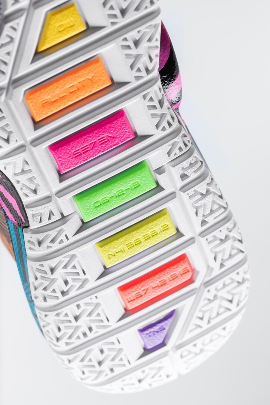 本次再度出现在刚刚发售的全城 7 鞋身之上,致敬意味与生日的快乐气氛相呼应,绚丽又个性非凡!