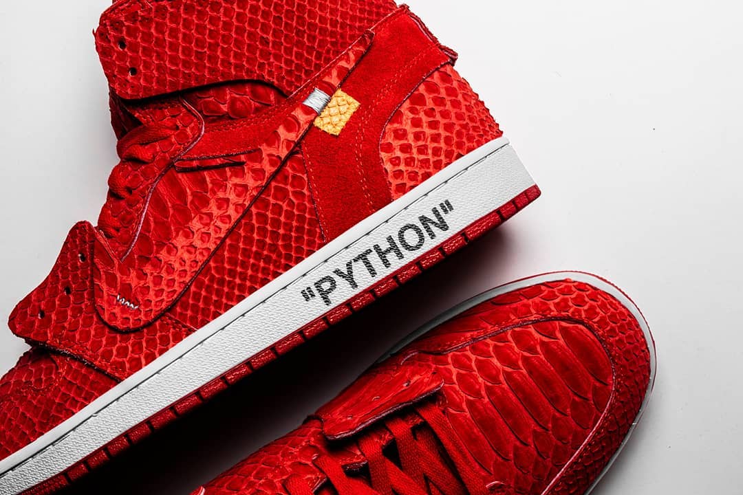 人人都爱的 OFF-WHITE x Air Jordan 1 也不可能错过!以立体感奢华感十足的蟒蛇皮打造,并冠以 “PYTHON” 巨蟒之名重现世人眼前!“狂蟒之灾” 同样是 TheShoeSurgeon 的代名词。