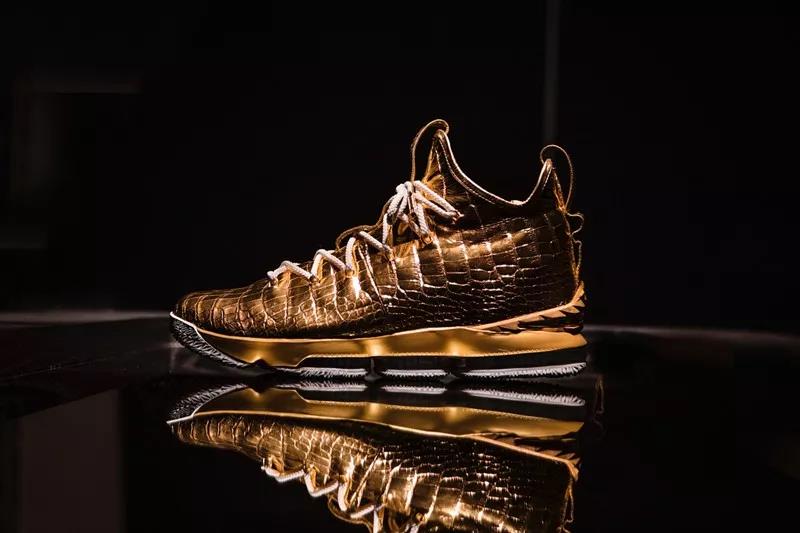 去年詹皇以 33 岁的年纪成为 NBA 史上最年轻的 30000 分纪录者,而 TheShoeSurgeon 为致敬詹姆斯的传奇事迹,为其特别打造了一双 24K 镀金镶钻的 Nike LeBron 15!