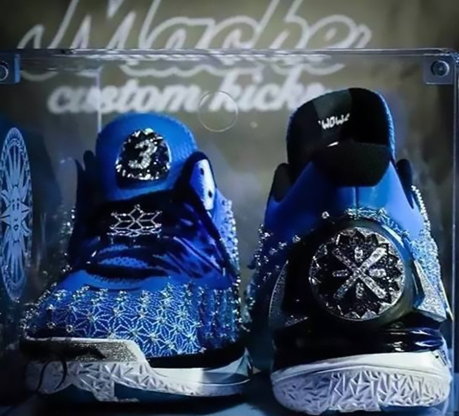 鞋身缀满了数百颗白色碎钻和 18 克拉的蓝宝石,连吊牌都是纯金打造,卖出了 400 万美元的天价!虽然小编没有统计,但恐怕竞争球鞋史上最贵球鞋也没问题了。
