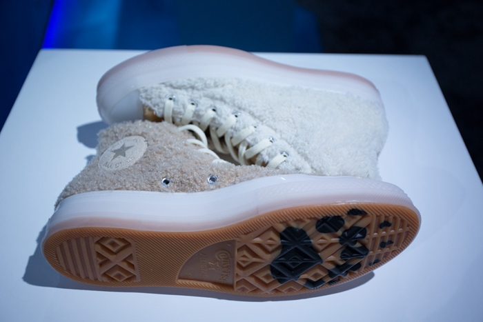 值得一提的是,此次首度将两双 CLOT x Converse 鞋款曝光。以经典的 Chuck 70 Hi 和 Jack Purcell Low 为原型,在鞋面和内里加入毛绒材质,凸显 “Ice Clod” 主题概念。而鞋底融入的熊掌图案,又增添了几分俏皮可爱气息。