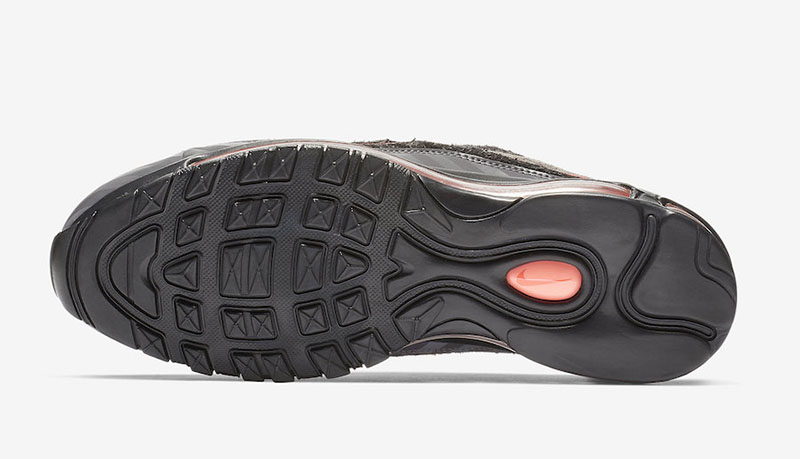 鞋身采用无烟煤与橘色勾勒,黑色中底内嵌橘红色 Air Max 气垫,营造强烈的视觉反差!翻毛皮革与鞋身侧边隐约的线条纹理,相比传统复古造型耐脏又颇具时尚质感。
