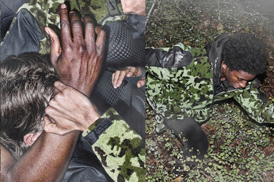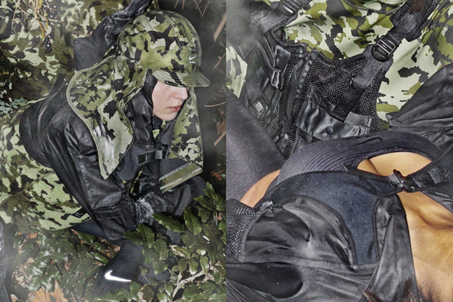 依旧是以机能风为主题,但与上一季的酷黑装扮不同的是,此次换上了常见的 “迷彩元素”,带来浓烈的军事风既视感。