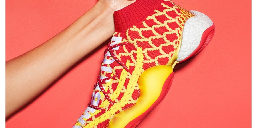 另外一双 Crazy BYW 整体设计大面积使用了红、黄两种配色,完美演绎了极具中国特色的 “番茄炒蛋” 元素。