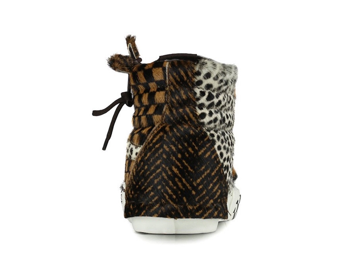 如今 Vans 在勇于创新的路上越走越远,今日一款全新配色的 Vans Vault SK8-HI 再次印证了这一点。 此次以 “剪切和粘贴” 为灵感,将豹纹、以及马毛妆点的棋盘格图案覆盖鞋面,在极具野性的外表下,凸显奢华质感。 除了大胆选用动物图案外,还有解构设计加持。前后下垂的动物图案材质、侧身的拉链以及中底橡胶贴片,都是典型的解构元素。 该鞋款将陆续登陆海外精选滑板店铺,感兴趣的朋友不妨多加留意。