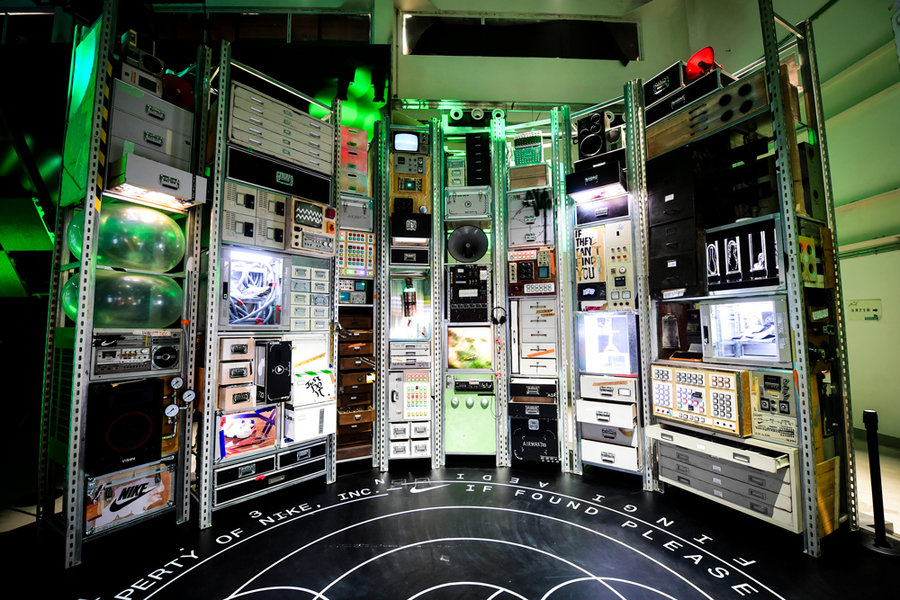 活动现场刚刚进门,映入眼前的便是专为此次活动打造的巨大装置 —— Air Max 档案馆,Air Max 1 到 Air Max Lunar90,以这样充满仪式感的方式向我们展示了 Air Max 长达 30 多年的历史。