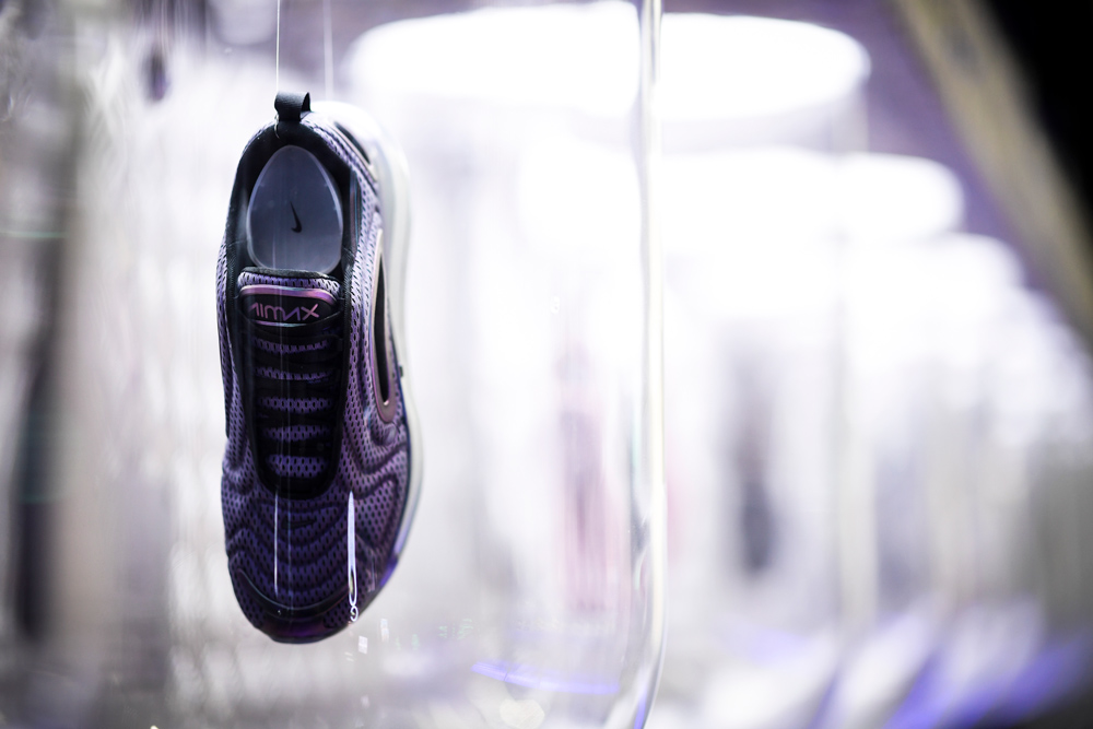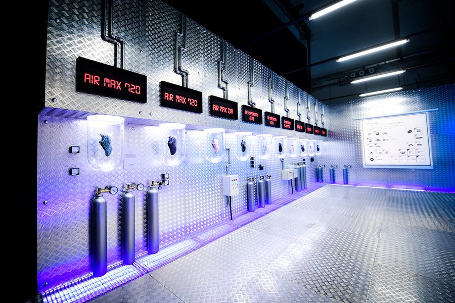 与 Air Max 档案馆中陈列的鞋款不同,走过 Air Max 720 的时间隧道后,Nike 呈现出的是 Air Max 实验室。在这里你可以看到最新的 Air Max 鞋款。