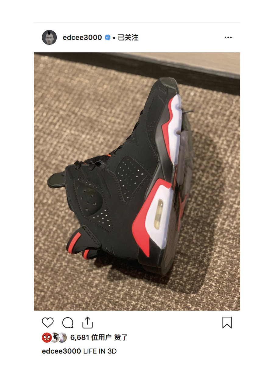 将于 2 月份正式回归的 Air Jordan 6 “Black Infrared” 无疑是今年第一款称得上「人气爆棚」的复刻配色了。