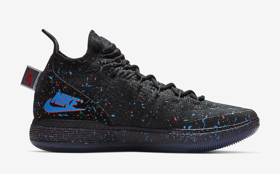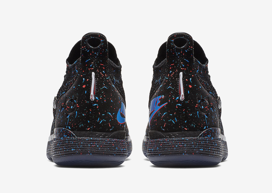 以纯黑为底色,其上带有红蓝双色喷溅,Swoosh 同样为红蓝双重设计,颇有些 3D 电影的感觉。整体风格与其他 “JDI” 配色球鞋有所不同,但后跟仍然带有标志性的标签设计。