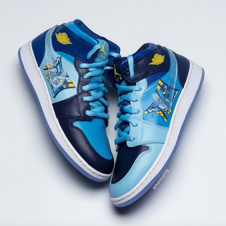 整体以深浅不同的蓝色示人,搭配黄色点缀细节,凸显色彩层次。鞋舌标以及鞋面均采用鸳鸯搭配方式呈现,玩味十足。鞋面外侧 Fly 涂鸦字样,彰显个性之余,又点明主题。