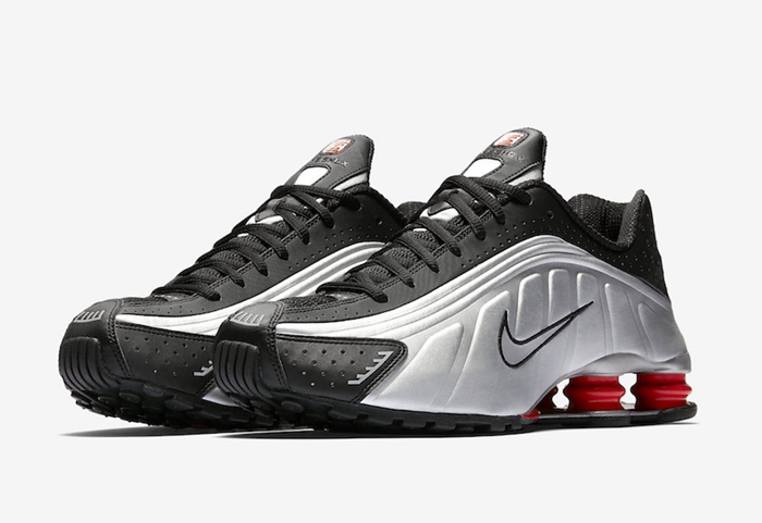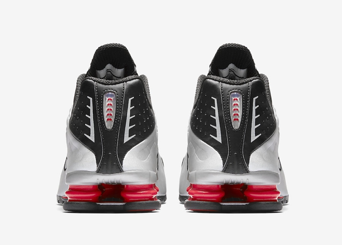 整体以黑银配色示人,未来感十足。细节之处点缀 3M 反光材质,而标志性的 Shox 气柱则以红色妆点,极具视觉冲击力。大底选用相同色调呈现,保证整体性。