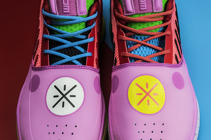 鞋身大胆使用了卡通风格的撞色设计,非常吸引眼球。