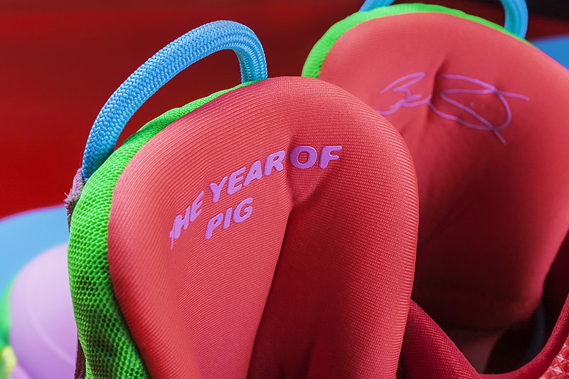 鞋舌内侧印有 “THE YEAR OF PIG” 以及韦德签名 Logo,彰显独特身份。