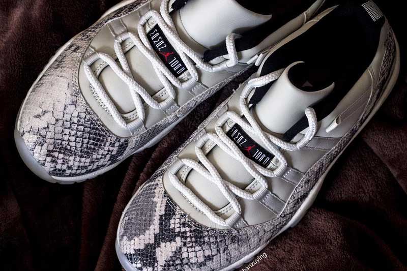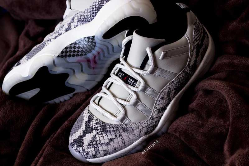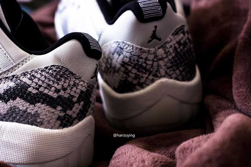 球鞋爆料账号 @hanzuying 在 Instagram 曝出了 Air Jordan 11 Low 白蛇的实物细节照片。
