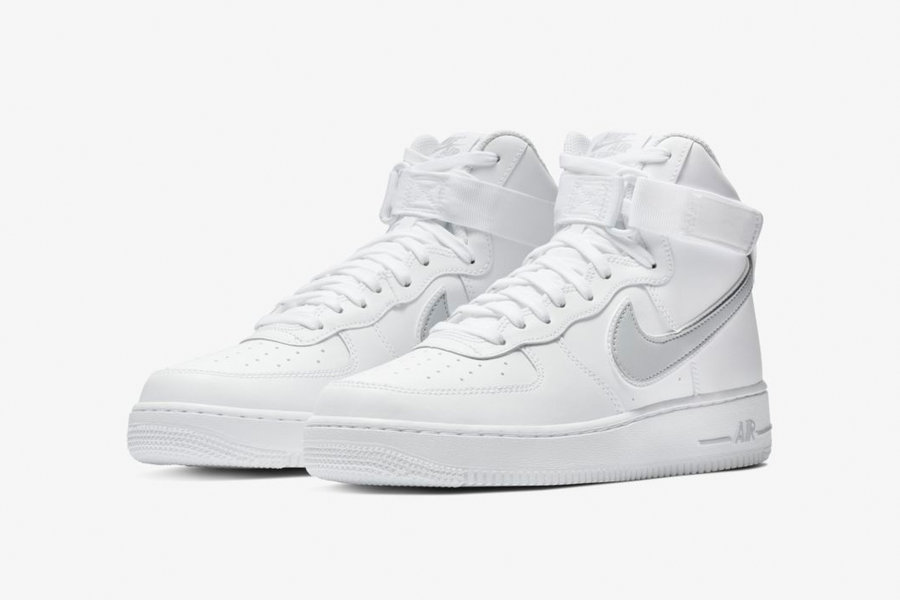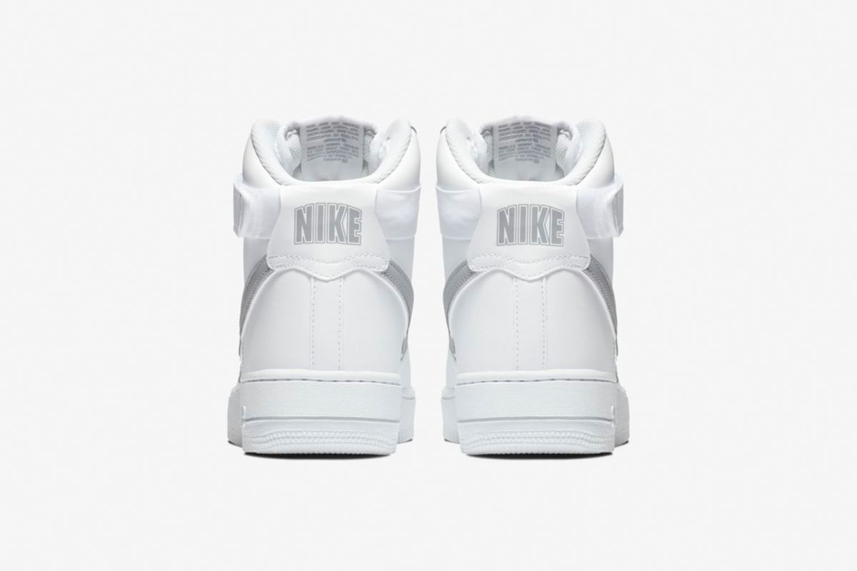 鞋款整体以白色为主调,Swoosh 及中底等细节加入浅灰色点缀,复古简约。在细节上与元年的白灰色 Air Force 1 High 不尽相同,元年的外底是灰色,而新配色为纯白色。